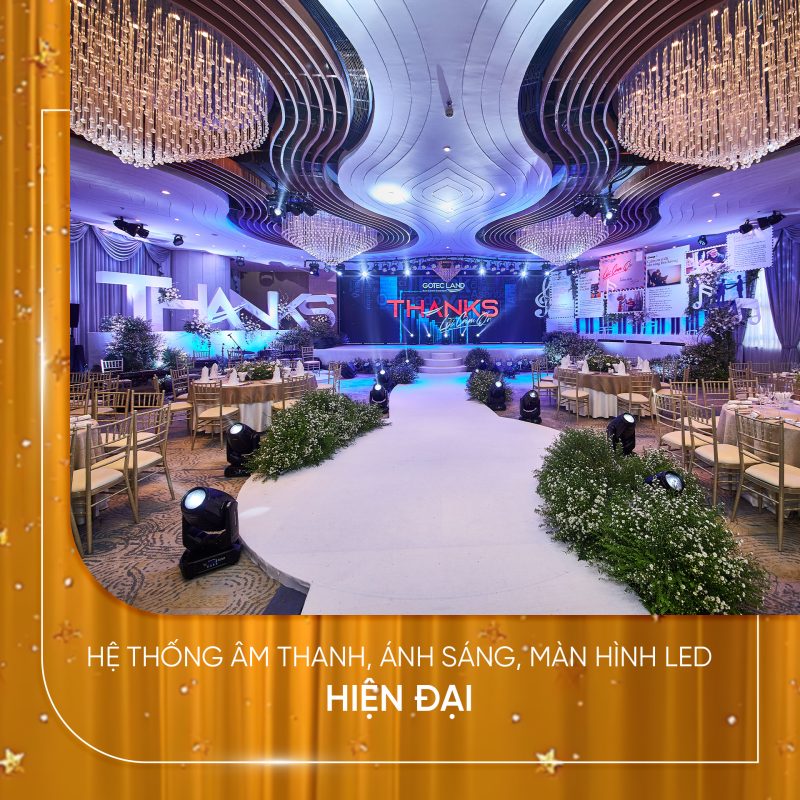 ▪️ Trọn gói tiện ích: Pháo kim tuyến, khung backdrop, hệ thống âm thanh – ánh sáng & màn hình LED hiện đại…