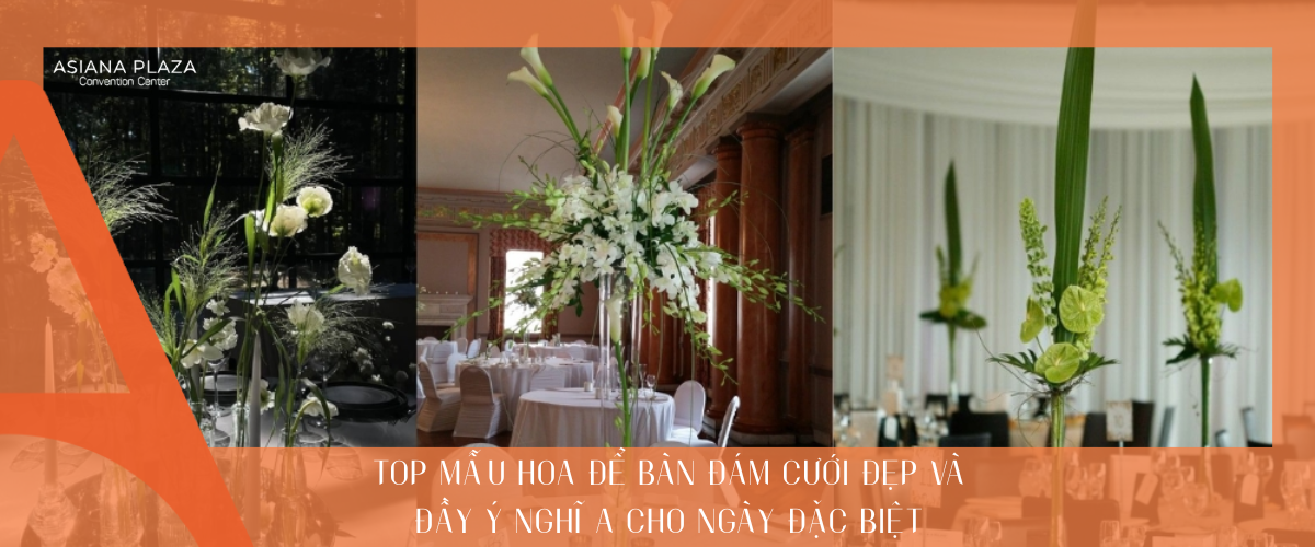 Một buổi tiệc cưới chỉn chu không thể thiếu những mẫu hoa để bàn đám cưới tươi tắn và tinh tế. Mỗi kiểu cắm hoa mang trong mình một ý nghĩa, giúp không gian thêm lãng mạn và sang trọng. Hãy cùng Asiana Plaza khám phá những mẫu hoa đẹp nhất, phù hợp với mọi phong cách tiệc cưới để tạo nên ấn tượng khó quên trong ngày trọng đại của bạn.
