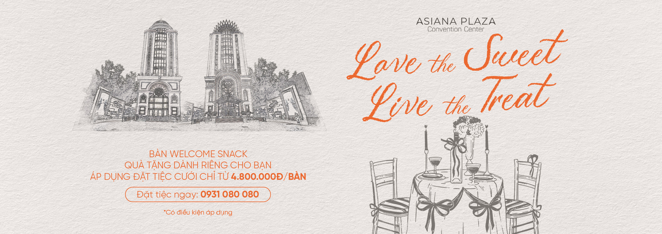 Sự tròn vẹn trong mọi khía cạnh tổ chức cưới đang chờ đợi các cặp đôi tại Asiana Plaza Tân Phú, hãy chọn cho mình một phong cách và chúng tôi sẽ biến tiệc cưới trong mơ thành hiện thực.